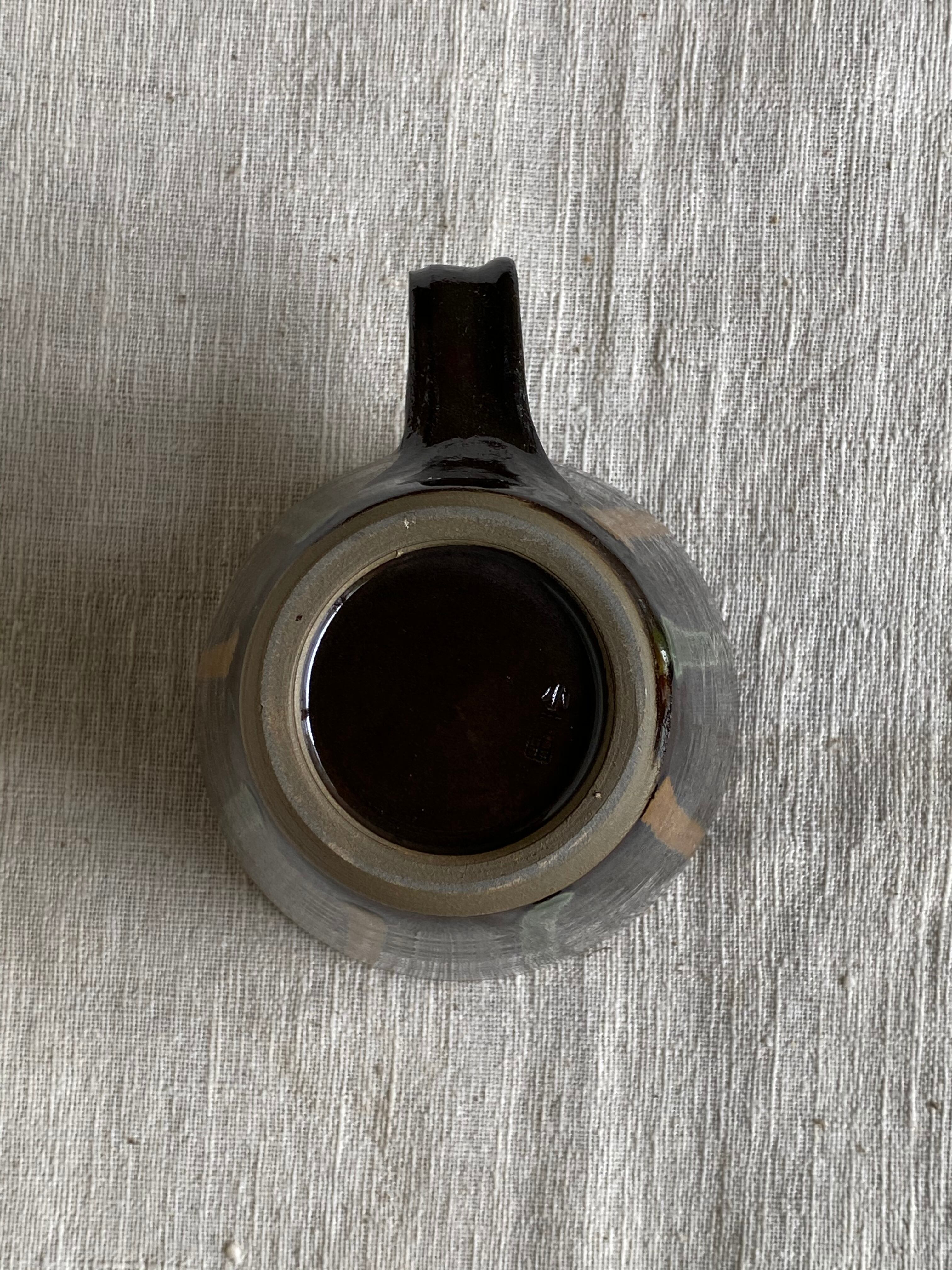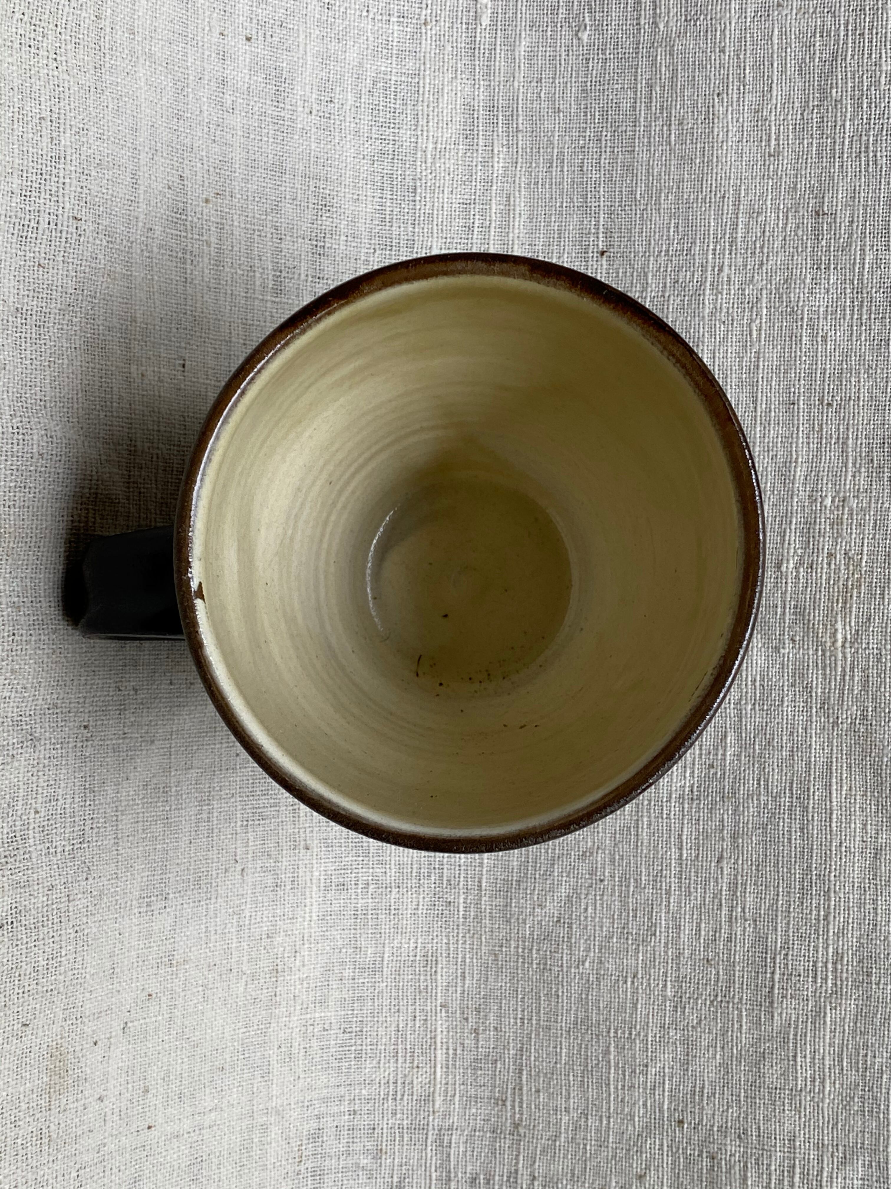 小鹿田焼 黒木昌伸窯 黒釉二彩流台形マグカップ