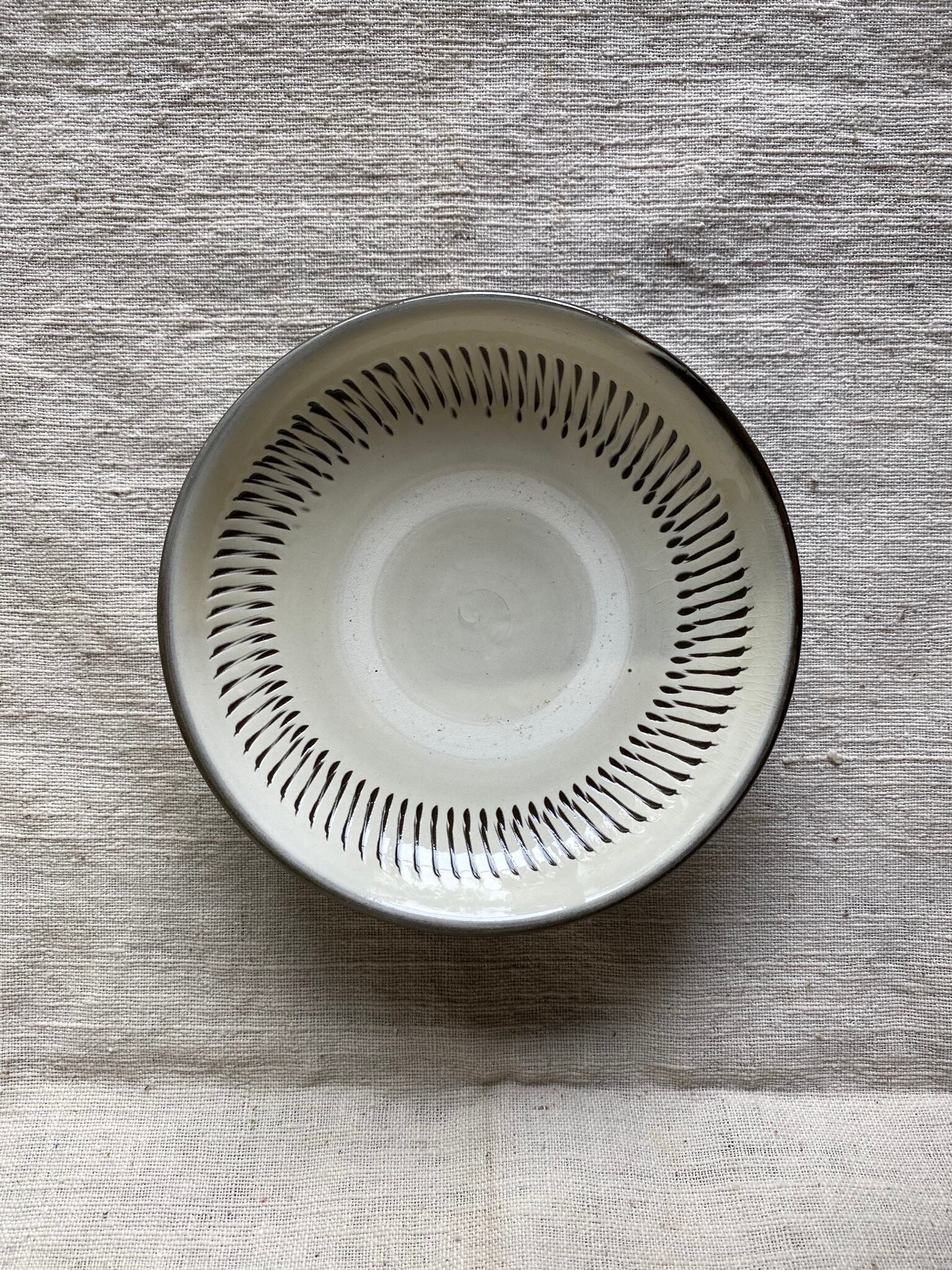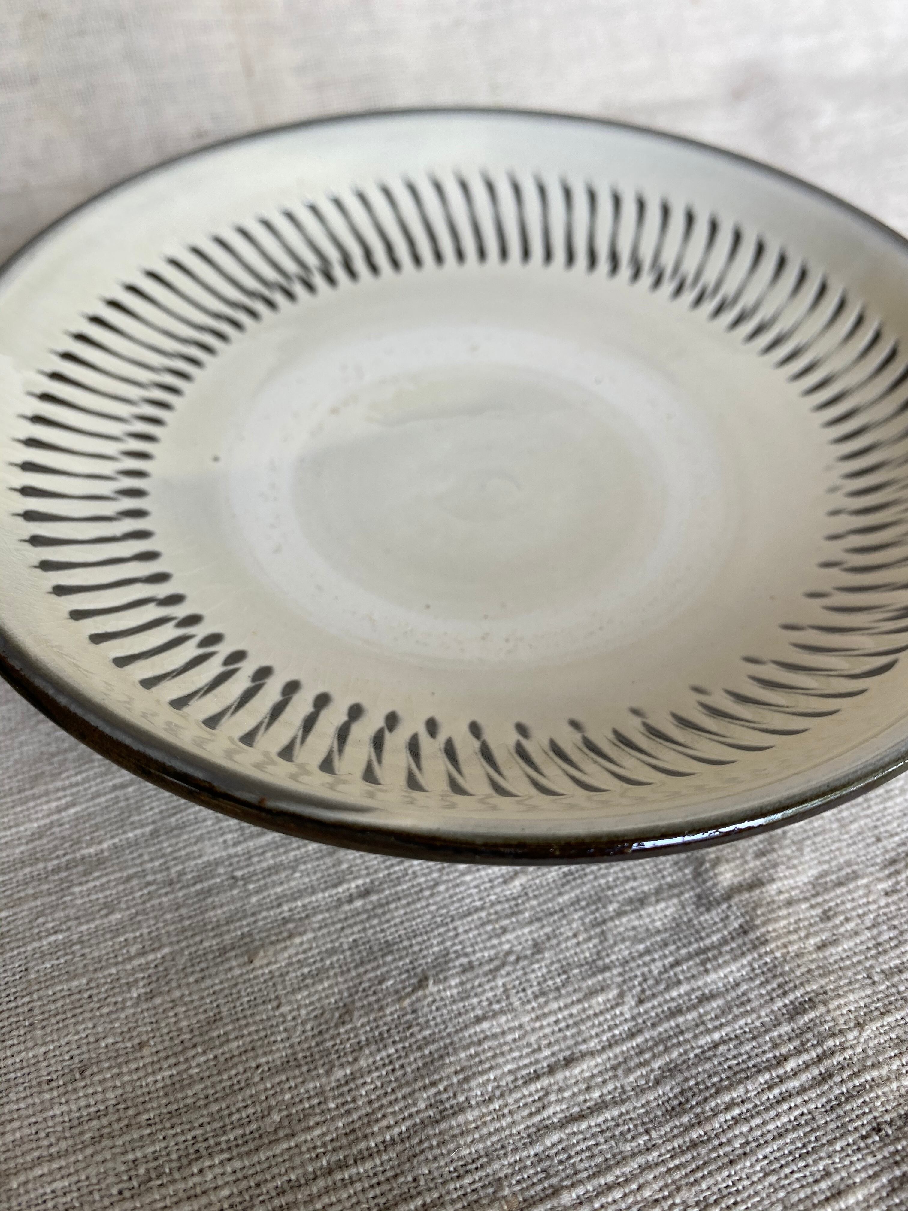 小鹿田焼 坂本浩二窯 白抜きトビカンナ4.5寸皿