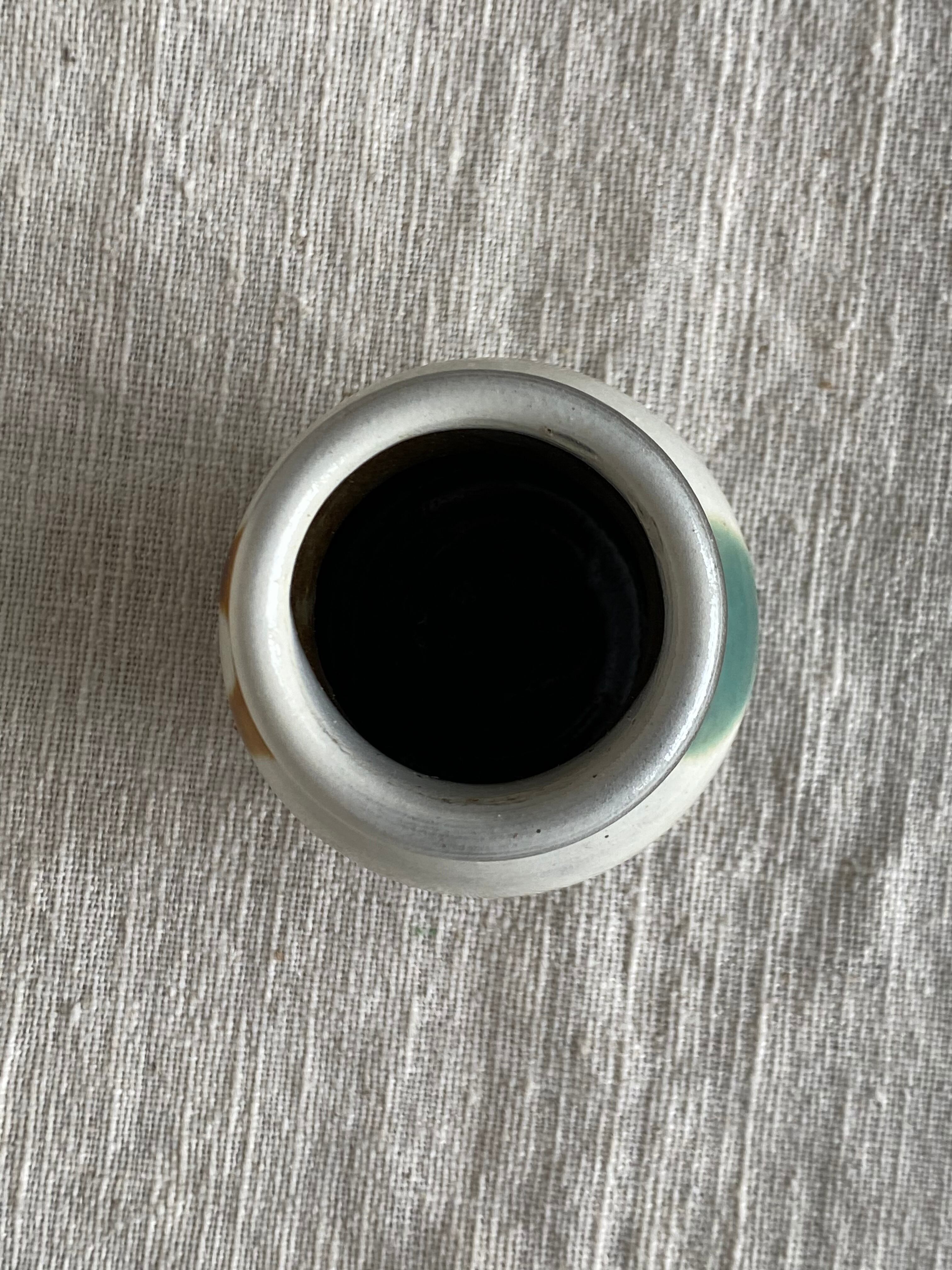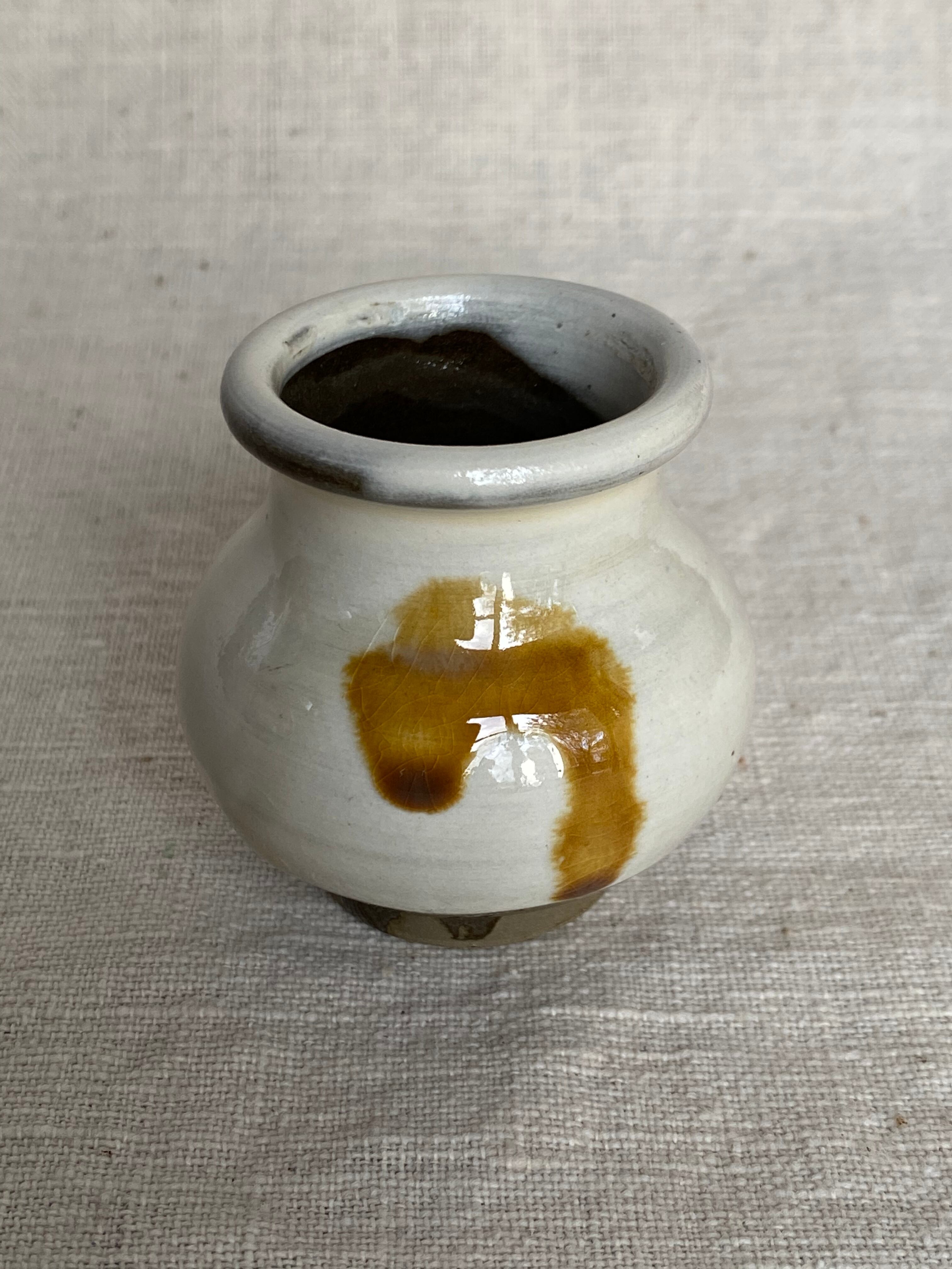 飴と青の釉薬が打ち掛けられた爪楊枝立てです。